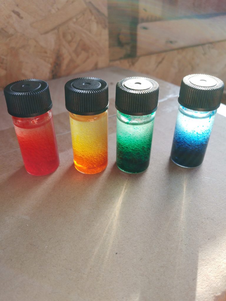 I had a bunch of little glass jars lying around and wanted to do something cool with them. i put olive oil in them and added a little water with food coloring, and that was all. it is super easy and it can be done with any size jar, but the bigger the jar, the more oil you need. I really like how they look with the light shining through them.