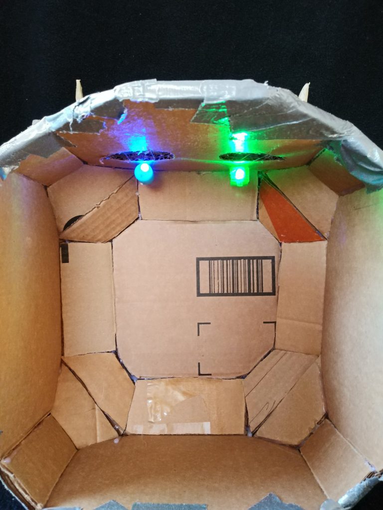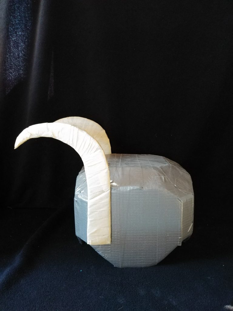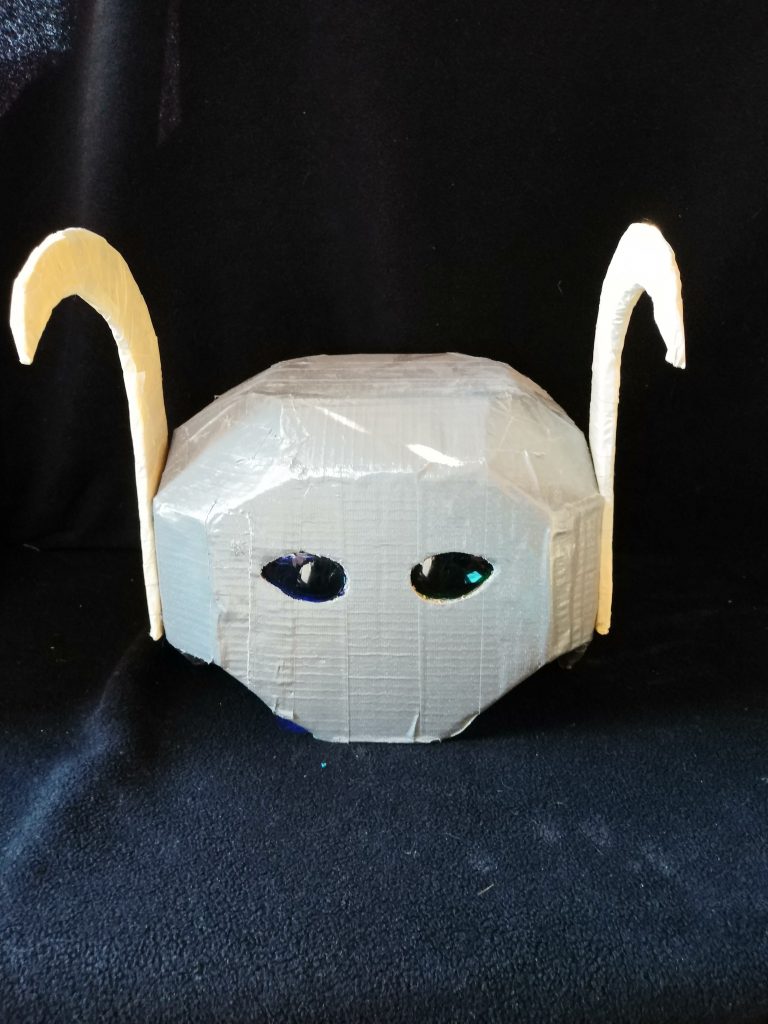 This is another cardboard helmet I made. this one is more styled as an alien helmet/skull. I gave it horns and light-up eyes.