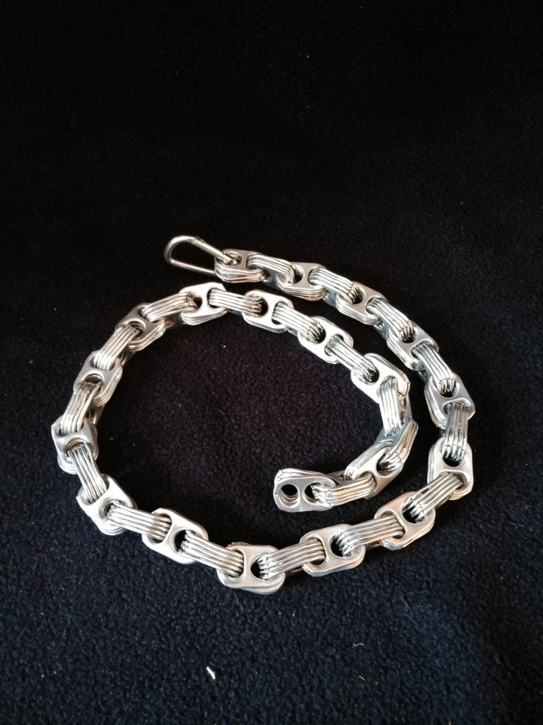 I mad this chain from 200 soda can tabs. it is super light weight so i wear it everywhere.